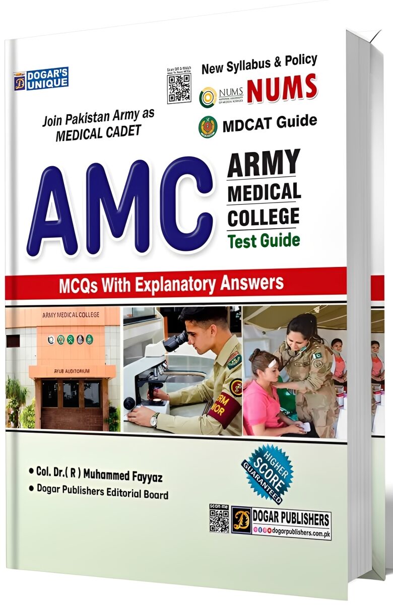 This guide is specifically designed for aspirants of Army Medical College (AMC) under the NUMS & MDCAT system. It includes a comprehensive set of MCQs with explanatory answers tailored to the new syllabus and policies of NUMS and Pakistan Army’s medical cadet recruitment process.