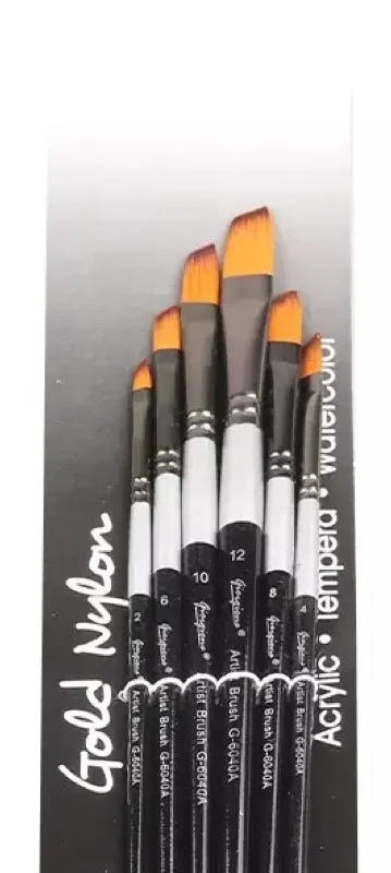 This set features six angular shader brushes in sizes 2 through 12, made with high-quality nylon bristles and black wooden handles. They are designed for acrylic, watercolor, and tempera painting, offering precision for both fine details and thick lines.