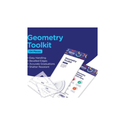 Durable 4-piece geometry set with accurate markings, ideal for everyday school use.