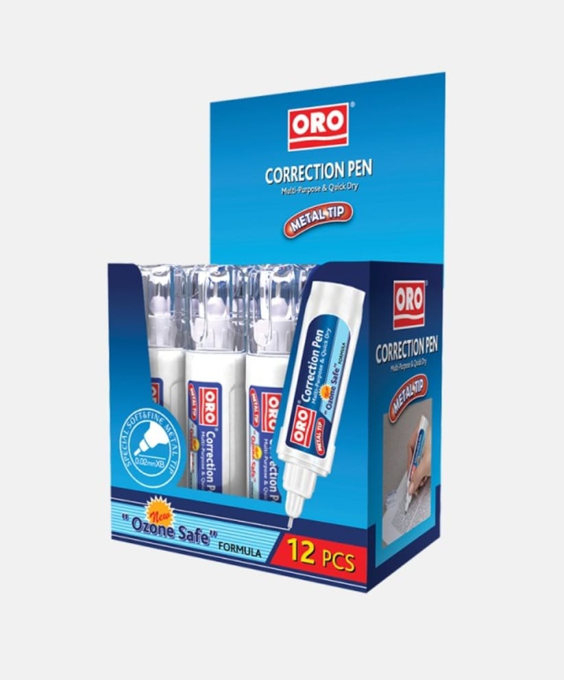 The ORO Correction Pen is known for its specialized formula and versatile application on various paper types.