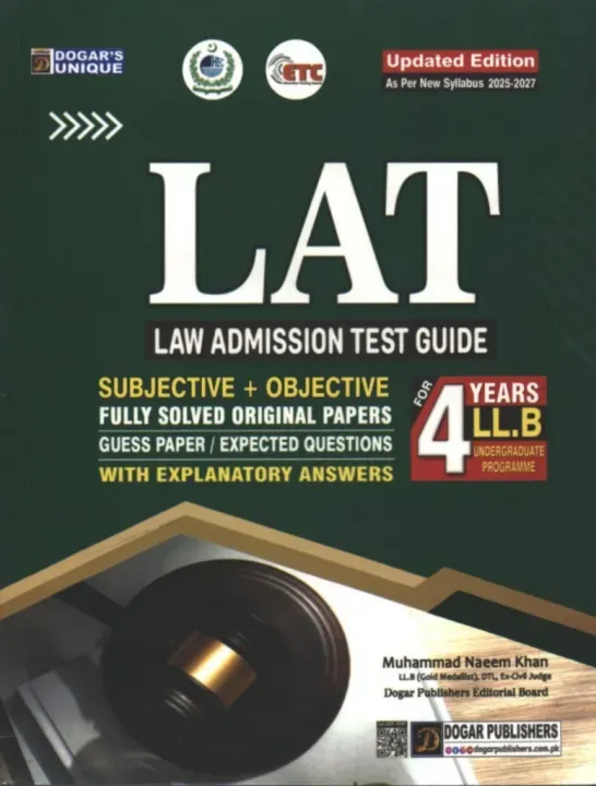 Ultimate Guide for LAT (Law Admission Test-2026) is a complete and up-to-date preparation book designed to help students excel in Pakistan’s LAW Admission Test (LAT). It includes topic-wise MCQs, solved past papers, detailed explanatory answers, and practical tips to build strong concepts in English, Analytical Reasoning, Logical Reasoning, and General Knowledge. Ideal for targeted practice, revision, and boosting your score with confidence.